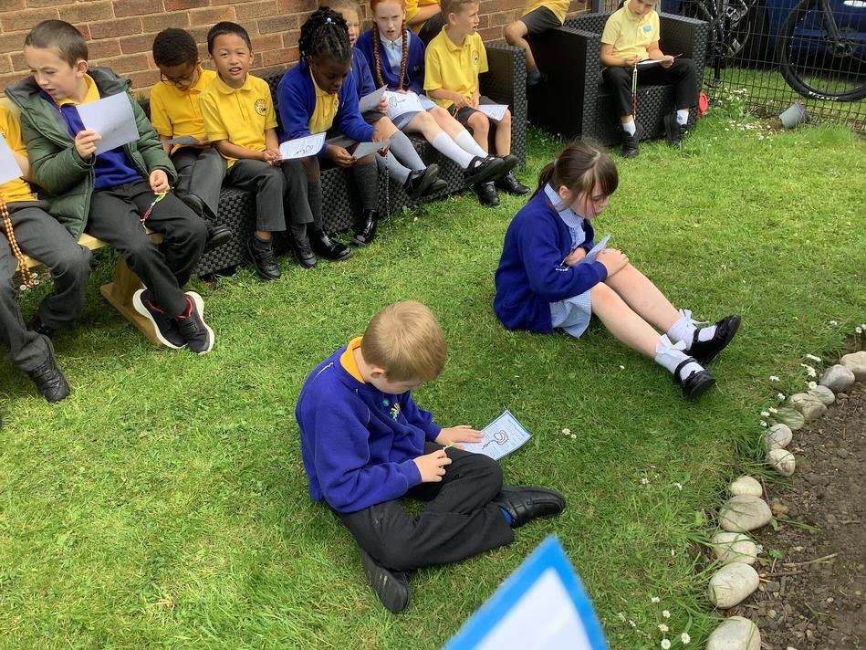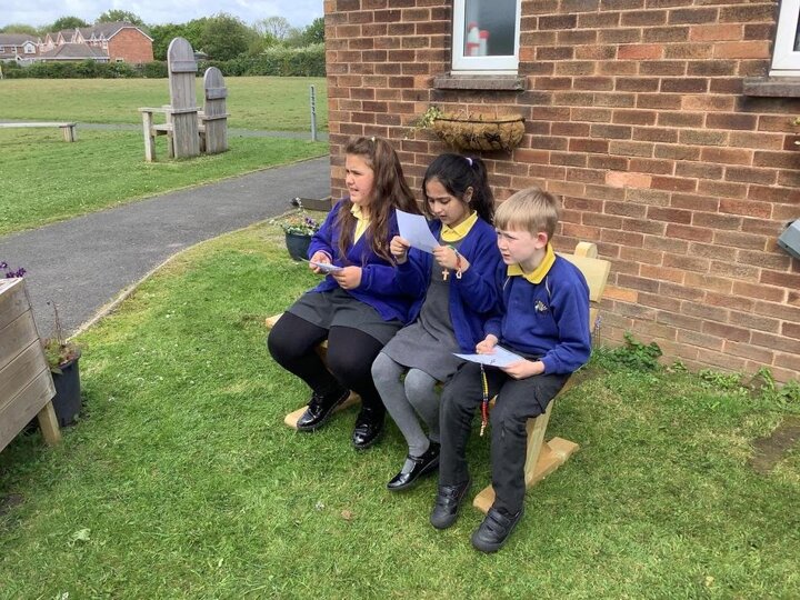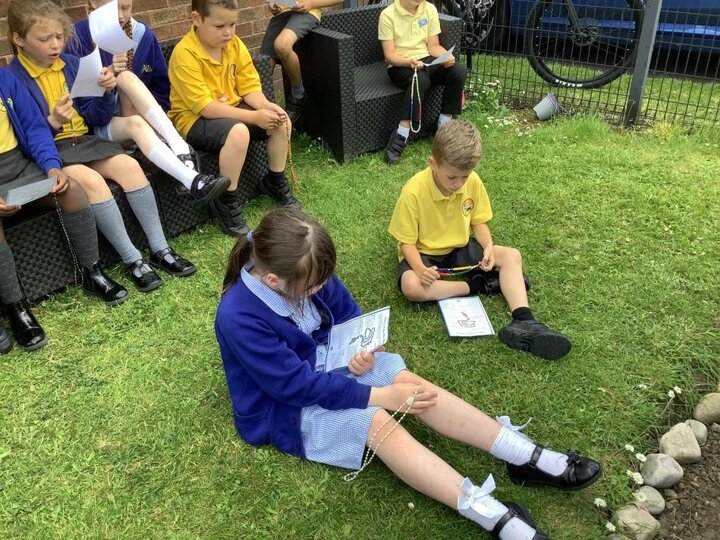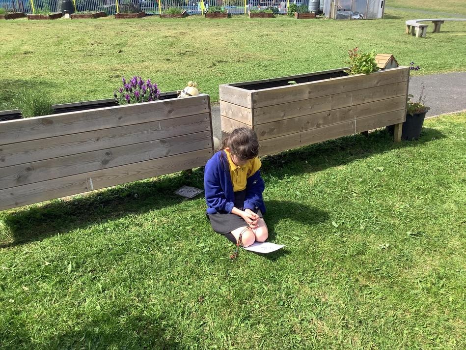 Year 3 praying the rosary in our prayer garden