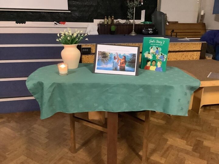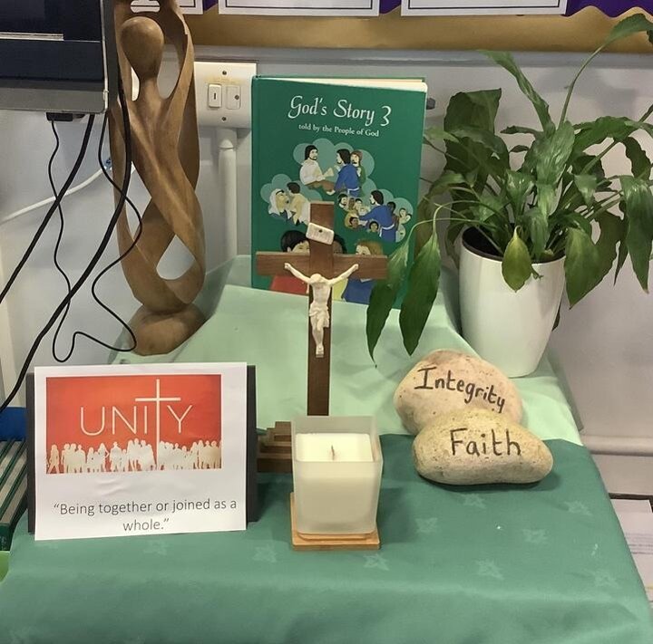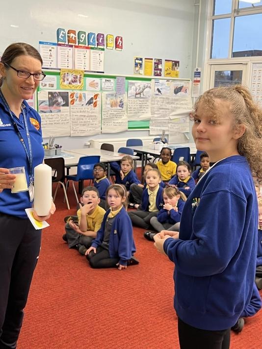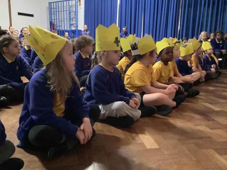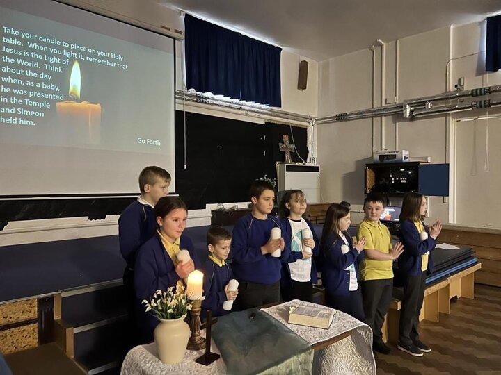 Our Year 5 and 6 pupils receiving prayer leader training from Mrs Wright