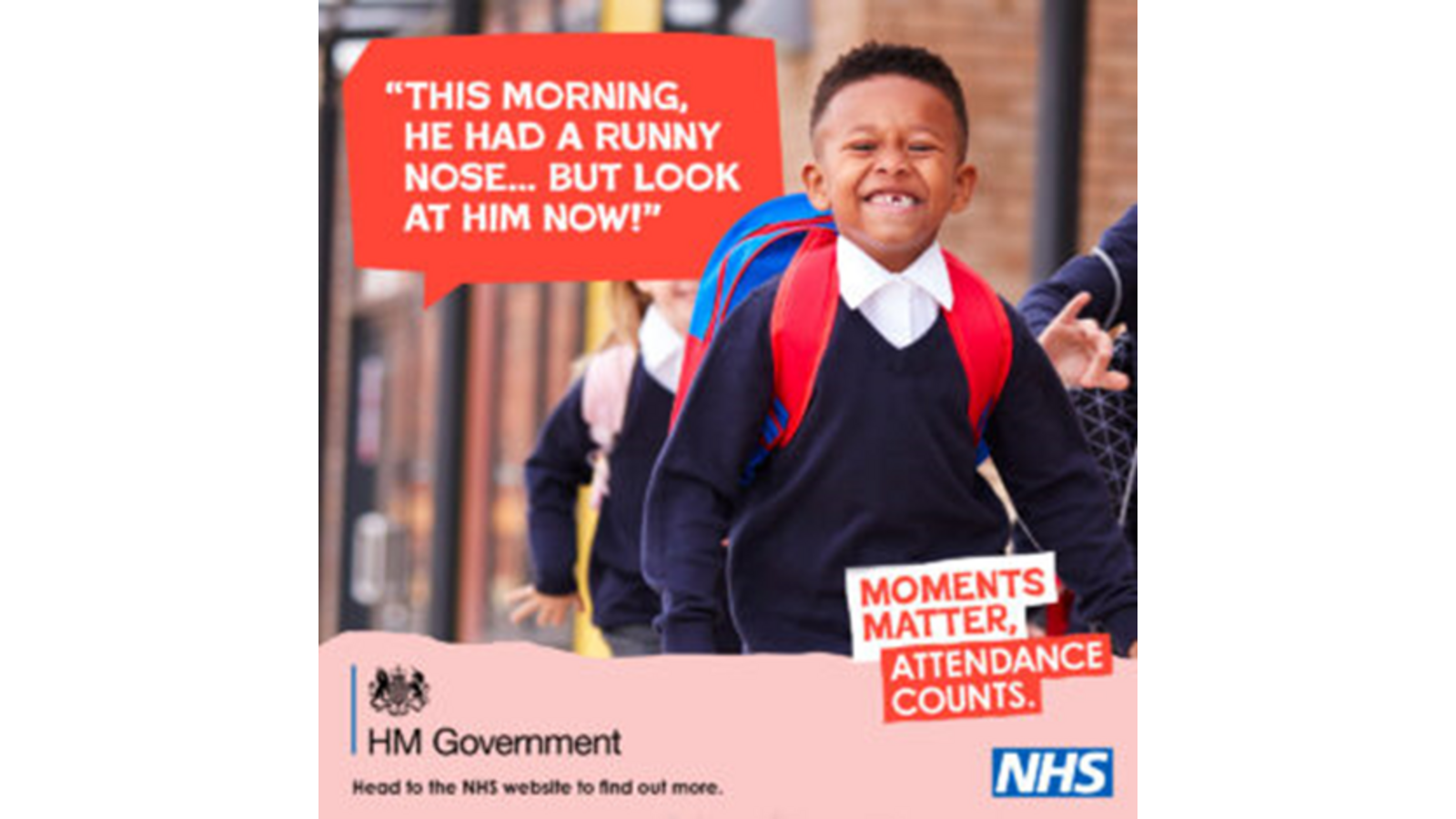 The government has launched a new national campaign to remind parents and carers of the importance of school attendance. You will be seeing it on tv, social media and hearing about it on the radio.